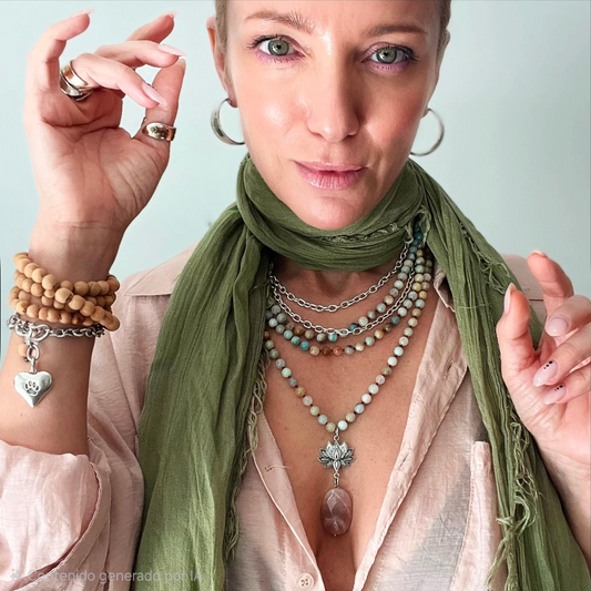 Collar de fusión de cadena larga de amazonita con loto de fe
